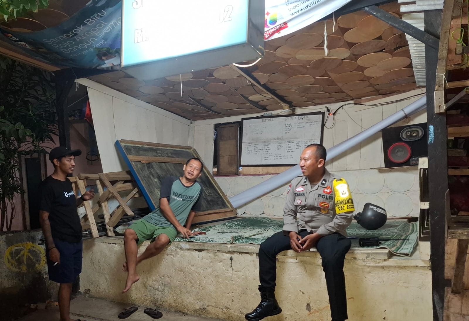 Personel Bhabinkamtibmas Polsek Anyar Polres Cilegon Polda Banten Aipda Isvana melaksanakan sambang Ronda Siskamling Dalam rangka menjaga Harkamtibmas dan Sebagai bentuk mendukung Program Quick Wins Presisi Polri, Rabu (12/10).