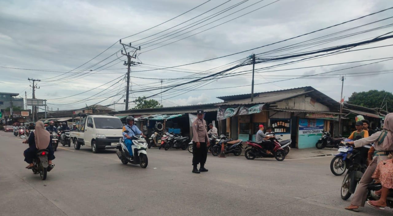 Cilegon - Pelayanan Kepada Warga Masyarakat dan Guna menciptakan situasi lalu lintas yang aman, tertib dan lancar, Personel Polsek Anyar Polres Cilegon Polda Banten secara rutin melaksanakan pengaturan lalu lintas di Simpang Puskesmas Anyar Jl. Raya Anyar-Cinangka, Rabu (12/11).
