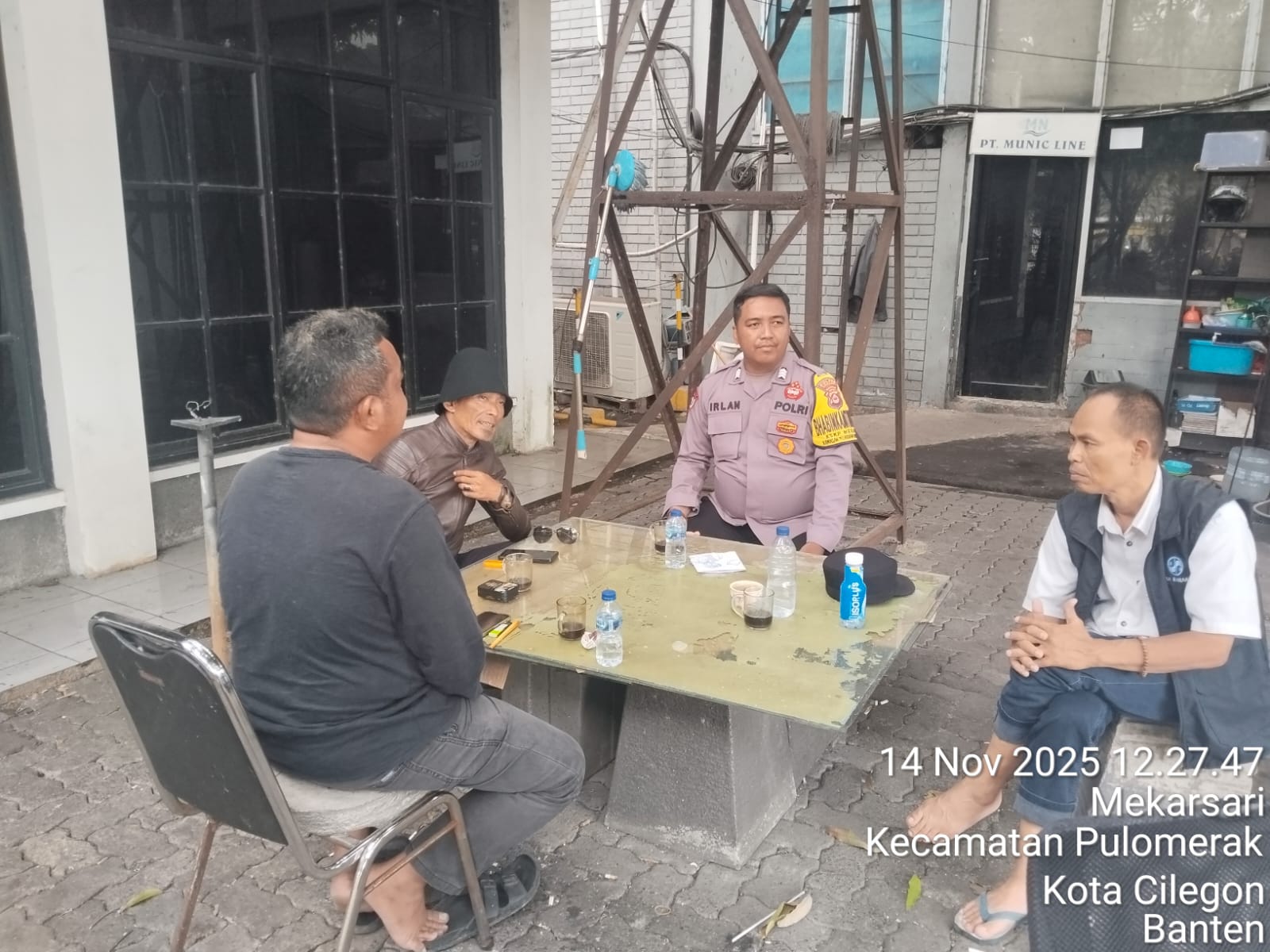 Cilegon - Personel Polsek Kskp Merak Polres Cilegon Polda Banten melaksanakan sambang dan patroli kawasan pelabuhan merak dalam rangka menjaga Harkamtibmas di Kawasan Pelabuhan Merak, Jumat (14/11/2025).