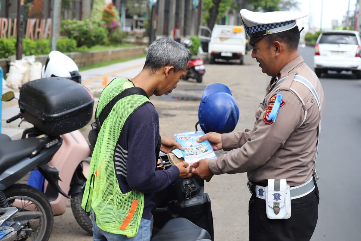 Selain penindakan, petugas juga membagikan leaflet imbauan keselamatan, memberikan sosialisasi langsung kepada pengendara, serta mengingatkan pentingnya mematuhi aturan demi mencegah kecelakaan lalu lintas.