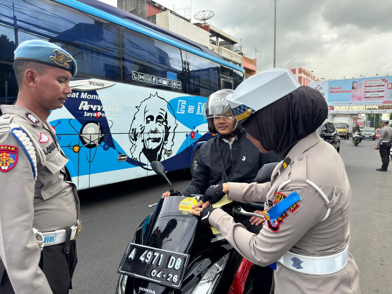 Selain penindakan, petugas juga membagikan leaflet imbauan keselamatan, memberikan sosialisasi langsung kepada pengendara, serta mengingatkan pentingnya mematuhi aturan demi mencegah kecelakaan lalu lintas.