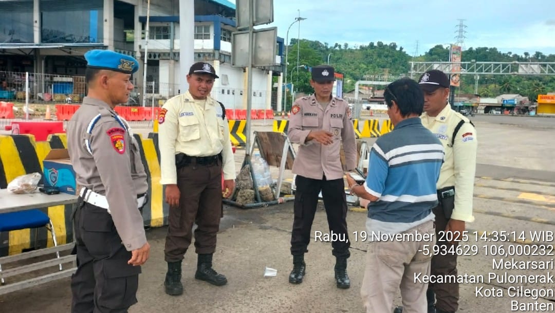 Cilegon - Personel Polsek Kskp Merak Polres Cilegon Polda Banten melaksanakan sambang dan patroli kawasan pelabuhan merak dalam rangka menjaga Harkamtibmas di Kawasan Pelabuhan Merak, Rabu (19/11/2025).
