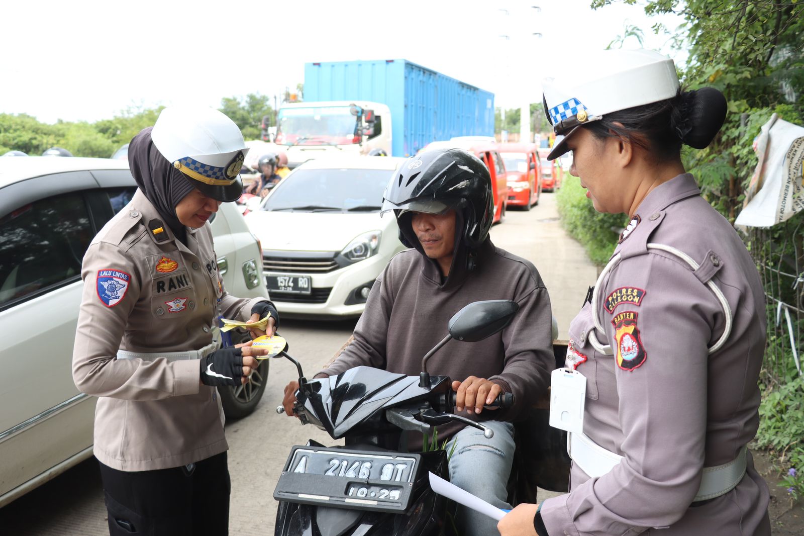 Petugas juga melakukan edukasi dan imbauan keselamatan secara humanis kepada para pengguna jalan. Sejumlah pengendara yang masih kedapatan melanggar diberikan teguran maupun penindakan sesuai aturan yang berlaku.