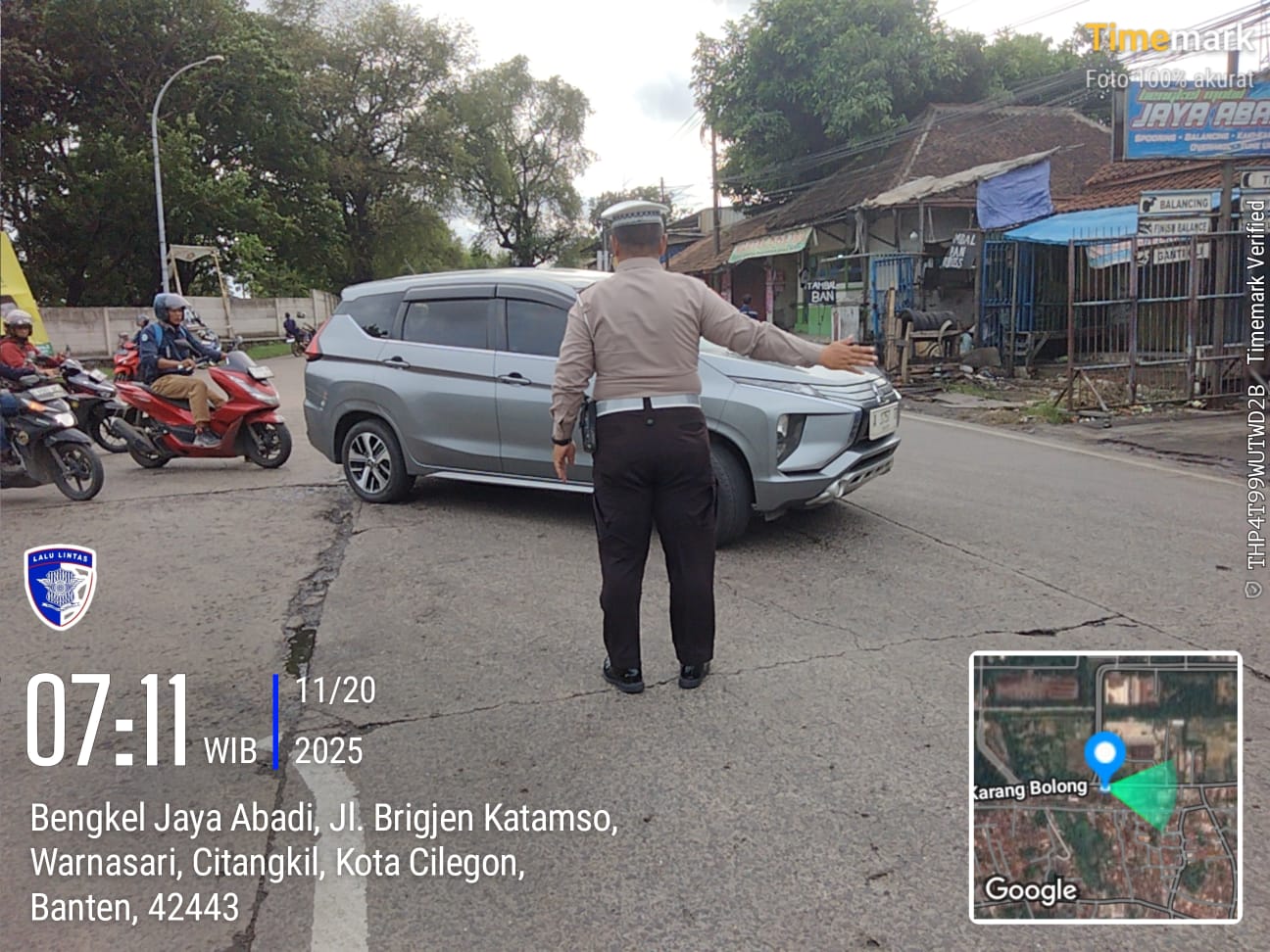 Cilegon - Dalam Mewujudkan Aksi Nyata Pelayanan Kepada Masyarakat,Personil Polsek Ciwandan Polres Cilegon Polda Banten Laksanakan Strong Poin Pengaturan Lalu-lintas, Kamis (20/11/2025).