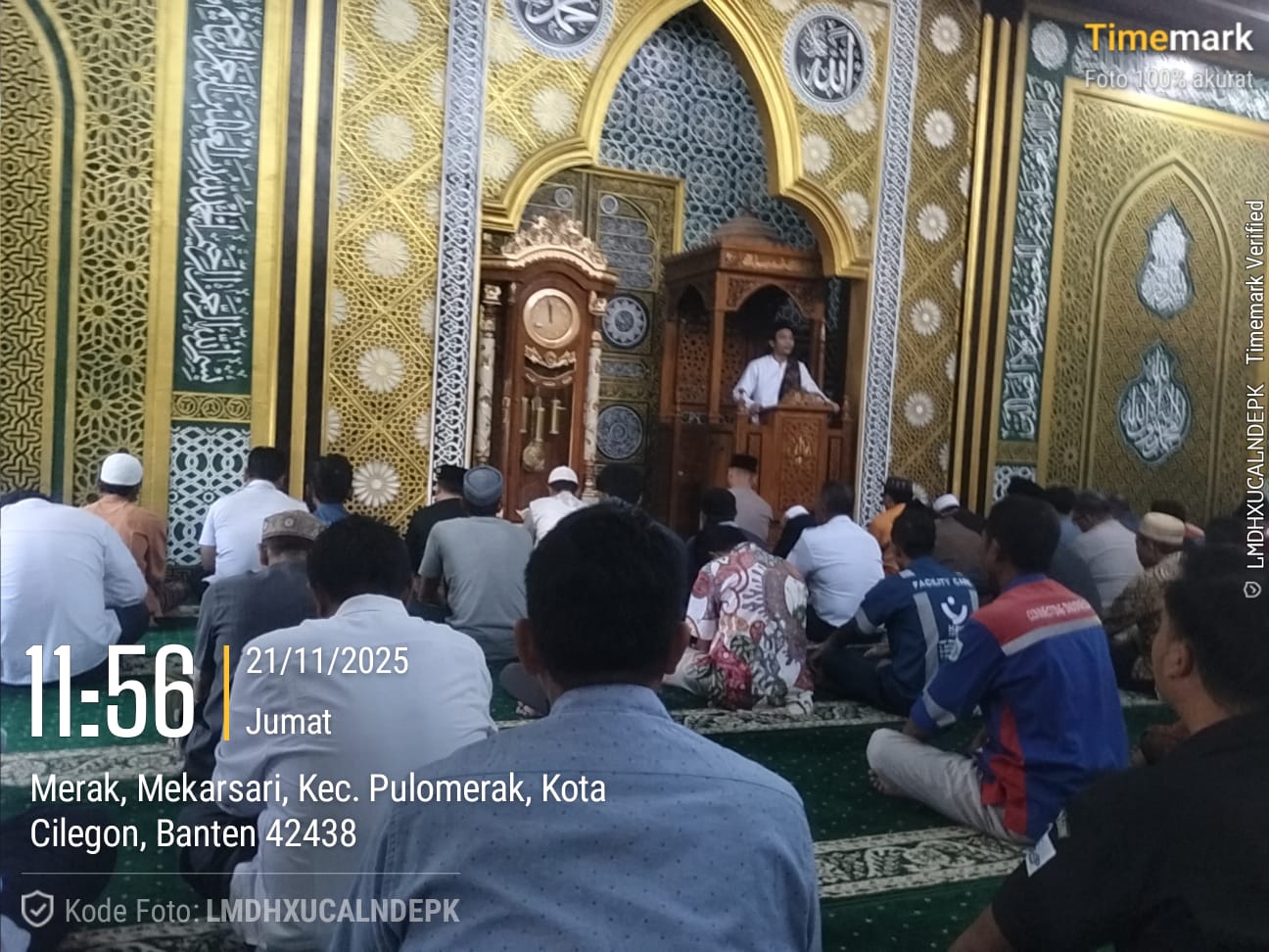 Cilegon – Personil Kskp Merak Polres Cilegon Polda Banten menggelar kegiatan Pembinaan Rohani dengan shalat Jumat keliling di Masjid Yang ada Di Daerah hukum Polsek Kp Merak Polres Cilegon Polda Banten, Jumat (21/11/2025).