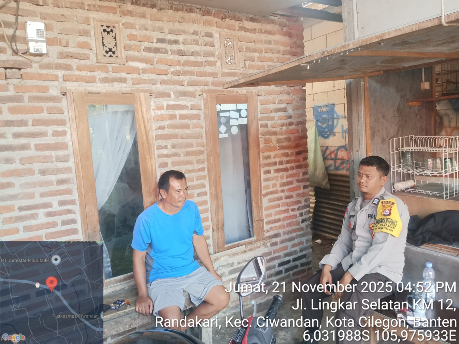 Cilegon - Bhabinkamtibmas Polsek Ciwandan Polres Cilegon Polda Banten Melaksanakan Sambang Dialogis Sambil Ngopi Bareng Warga sekaligus Bahas Ketertiban Dan Keamanan Lingkungan Binaan, Jum'at (21/11/2025).