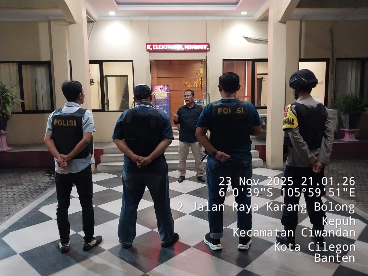 Cilegon - Personil Polsek Ciwandan Polres Cilegon Polda Banten menggelar apel malam Persiapan Patroli yang dipimpin Oleh Pawas Panit Intelkam Polsek Ciwandan IPTU Ali Asron, Minggu (23/11/2025).