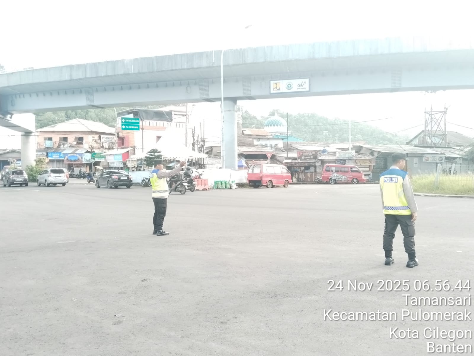 Cilegon - Dalam rangka peningkatan pelayanan prima kepada masyarakat, Kskp Merak Polres Cilegon Polda Banten melaksanakan pengaturan antrian R4 yang akan masuk ke Kapal Ferry di Pelabuhan Merak, Senin (24/11/2025).