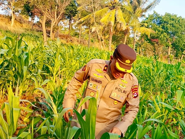Oleh sebab itu Kapolsek Pulomerak dan  bhabinkamtibmas polsek Pulomerak bersama masyarakat tani Kel. Lebakgede kec. Pulomerak saat ini lakukan perawatan tanaman jagung, ujarnya