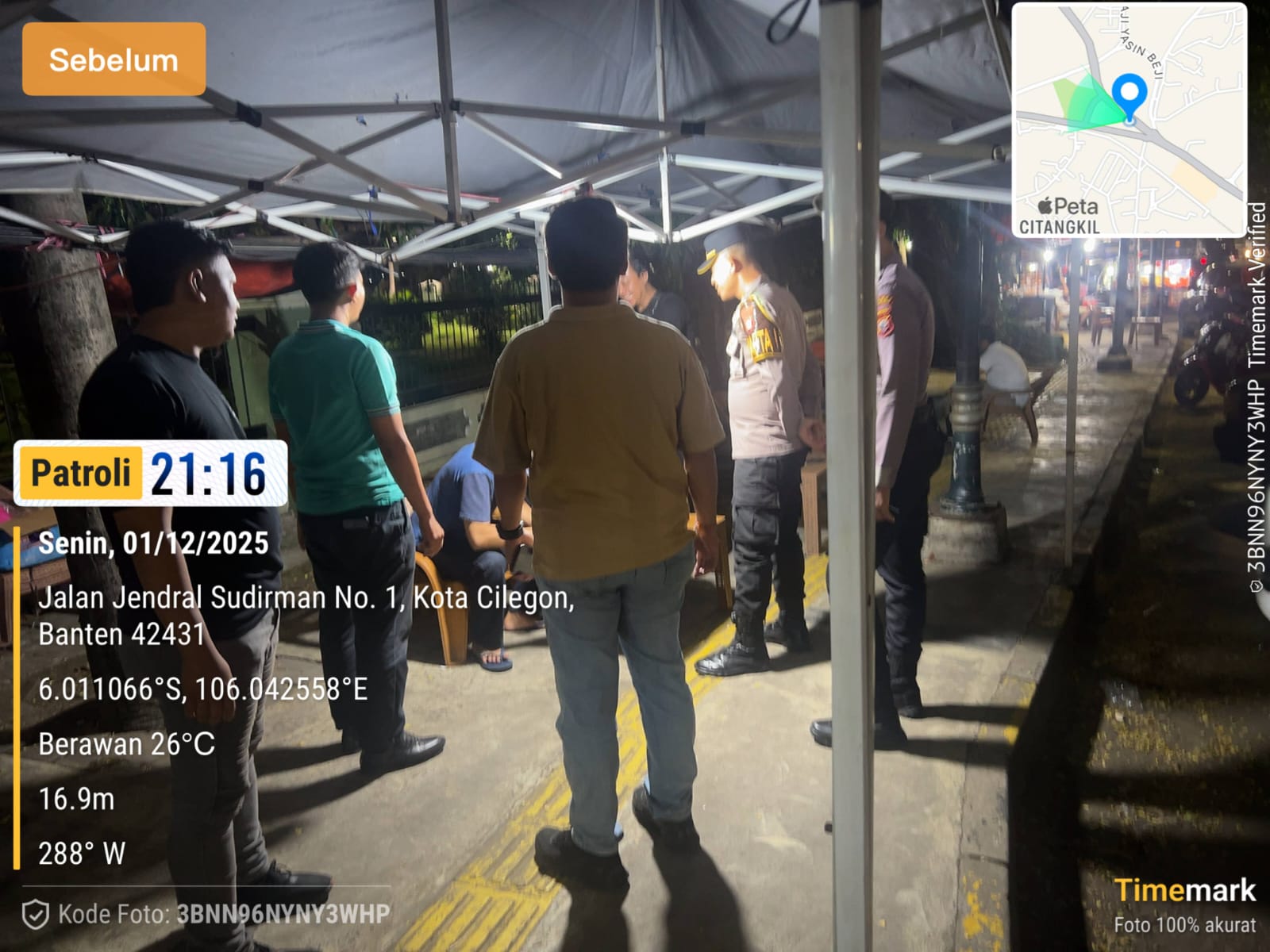 Polres Cilegon melaksanakan kegiatan kepolisian untuk menjaga keamanan dan ketertiban, antara lain: 1. Patroli malam di lokasi rawan gangguan kamtibmas 2. Razia malam untuk mencegah tindak kejahatan 3. Pengecekan pos kamling untuk memastikan keamanan lingkungan 4. Dialog dengan warga untuk meningkatkan kesadaran keamanan Dengan kegiatan ini, Polres Cilegon bertujuan mencegah tindak kriminalitas, memberikan rasa aman bagi warga, dan meningkatkan kesadaran keamanan masyarakat.