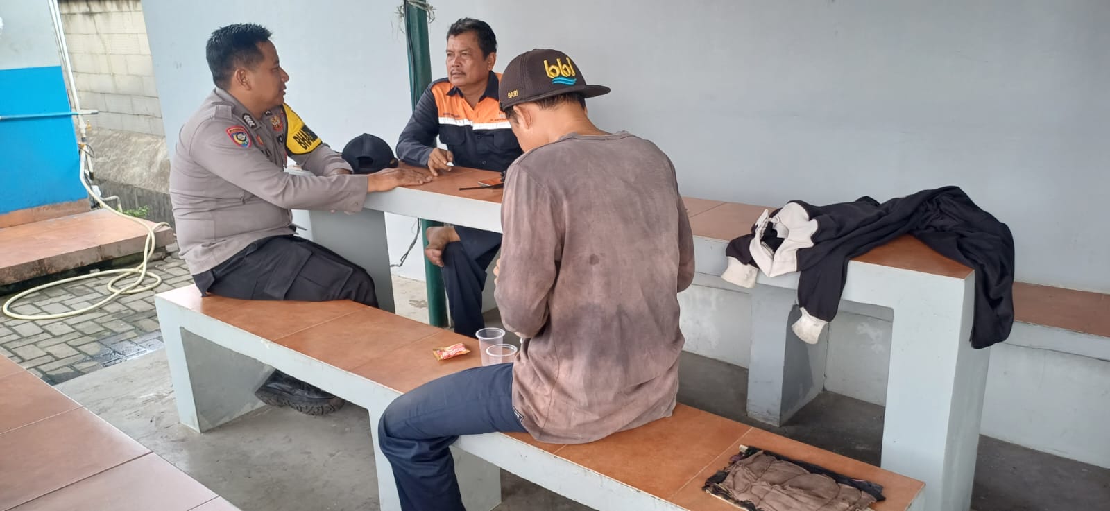 Jalin Silaturahmi, Bhabinkamtibmas Pelabuhan Polsek KSKP Banten berbincang ke Buruh Pelabuhan