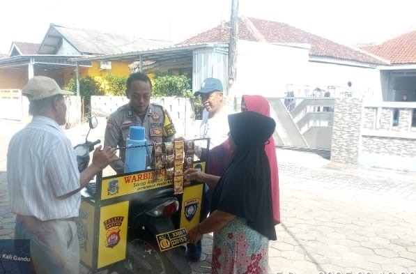 Bhabinkamtibmas Kelurahan Purwakarta Bripka Nugraha dari Polsek Purwakarta Polres Cilegon melaksanakan program "Commander Wish" Kapolda Banten berupa WARBINLING (Wurung kopi Bhabinkamtibmas keliling