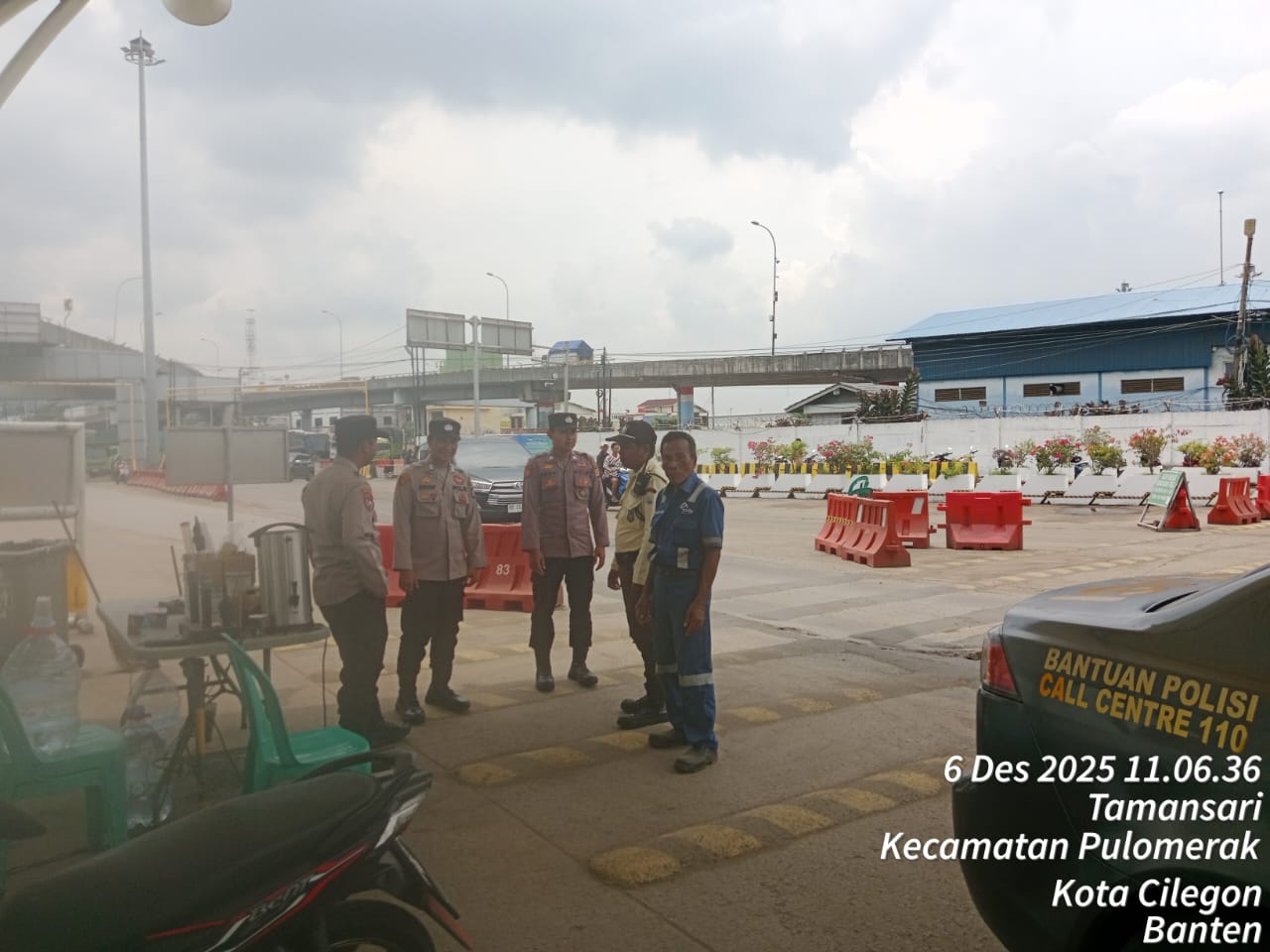 Cilegon - Personel Polsek Kskp Merak Polres Cilegon Polda Banten melaksanakan sambang dan patroli kawasan pelabuhan merak dalam rangka menjaga Harkamtibmas di Kawasan Pelabuhan Merak, Sabtu (06/12/2025).