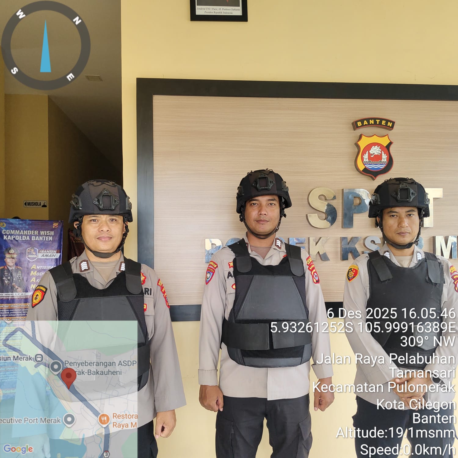 Cilegon - Personel piket jaga Polsek Kskp Merak Polres Cilgon Polda Banten melaksanakan siaga 1 Polsek pelaksanaan Sispam Mako oleh piket siaga dipimpin oleh Kspk Polsek Kskpy Merak Polres Cilegon Polda Banten, Sabtu (06/12/2025).