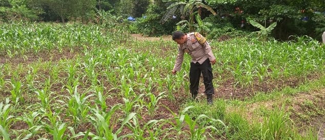 Personil Bhabinkamtibmas Kelurahan Kota Bumi Polsek Purwakarta Cek Tanaman Jagung Pastikan Pertumbuhan Jagung