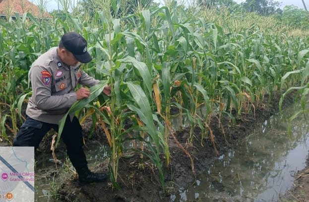 PERSONIL POLSEK PURWAKARTA LAKUKAN PEMANTAUAN PERTUMBUHAN TANAMAN JAGUNG DI WILAYAH