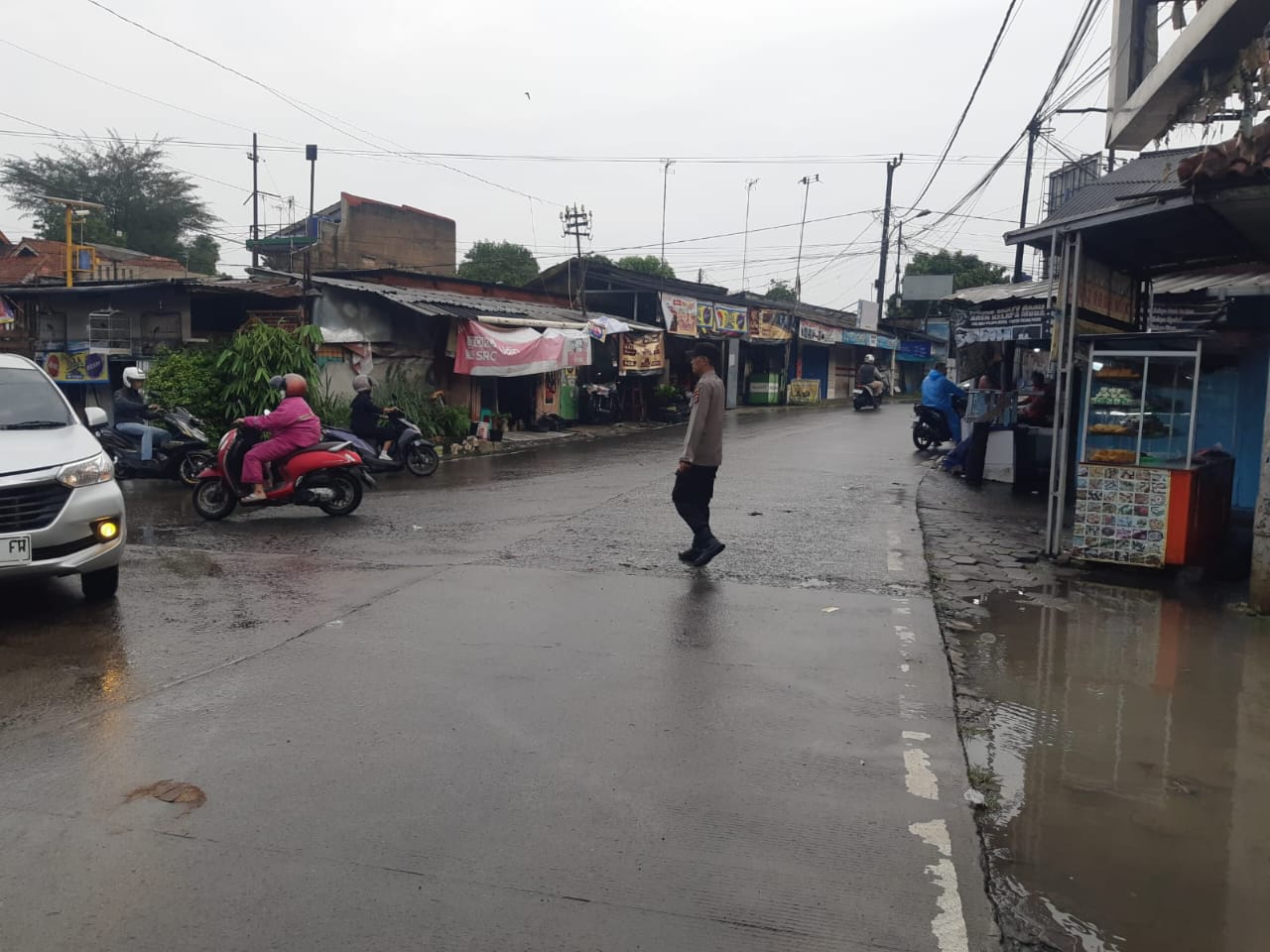 Strong Point Personil Samapta Polsek Cilegon Polres Cilegon urai kepadatan kendaraan.