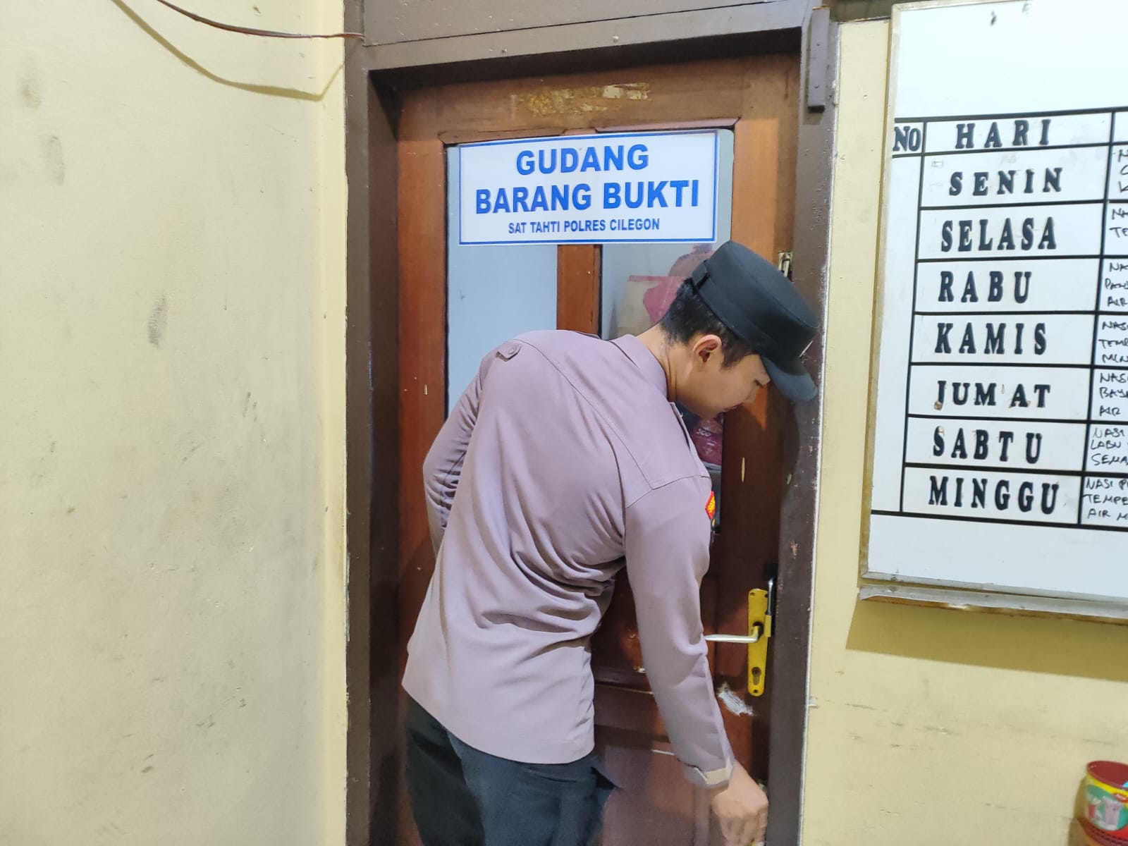 Anggota Piket Tahti Polres Cilegon, Harus Melakukan Kegiatan Rutin Pengecekan Kelengkapan dan Barang Bukti Di Gudang Barang Bukti.