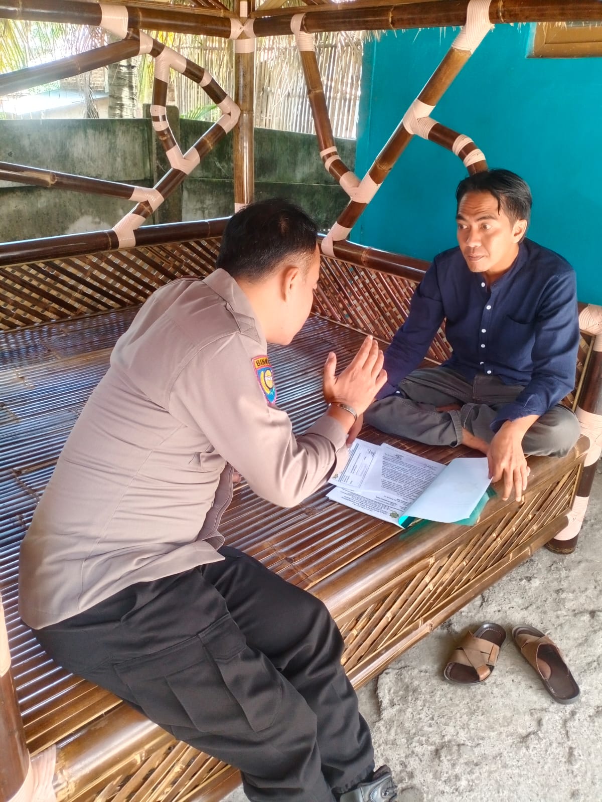 Dalam kesempatan tersebut Bhabinkamtibmas menyampaikan himbauan dan pesan pesan kamtibmas dan menyampaikan tentang pentingnya kerjasama dalam membina Kamtibmas baik dengan aparat pemerintahan setempat dan masyarakat agar situasi keamanan selalu kondusif, serta diharapkan agar menyampaikan permasalahan sekecil apapun sehingga dapat diselesaikan secepatnya dengan cara kekeluargaan.