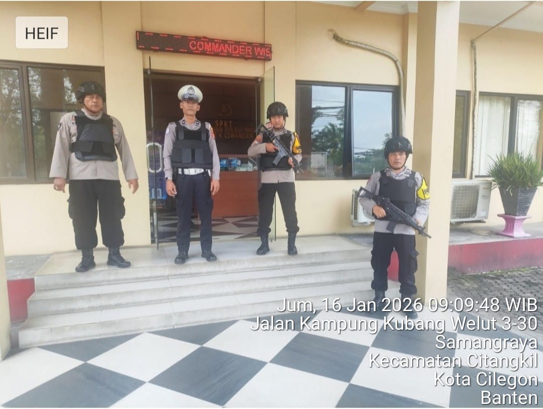 Cilegon - Guna mengantisipasi adanya potensi ancaman dan gangguan terhadap keamanan kantor maupun keselamatan personel piket jaga, Personil Polsek Ciwandan Polres Cilegon Polda Banten selalu tingkatkan kesiapsiagaan dan kewaspadaan dengan rutin menggelar kegiatan Sistem Pengamanan Mako (Sispam Mako), Jum'at (16/01/2026).
