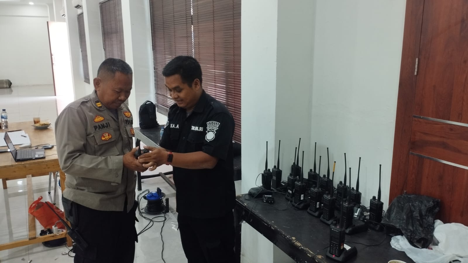 Anggota Tik Polres Cilegon Menyiapkan Sarana dan Prasarana Alkom Dalam pelaksanaan tugas tersebut anggota TIK Polres Cilegon yang bertanggung jawab untuk menyiapkan peralatan sarana alkom berupa handy talky. Selain itu agar di tidak ada gangguan pada jaringan, sebelum pelaksanaan anggota TIK melakukan pemeriksaan terhadap sarana dan prasarana tersebut . Satu jam sebelum sarana alkom digunakan. Kapolres Cilegon AKBP. DR. MARTUA RAJA TARIPAR LAUT SILITONGA. melalui Kasi TIK AIPTU Suwanto, S.H. menyampaikan bahwa “untuk menunjang kelancaran penyampaian informasi anggota TIk Polres Cilegon selalu memeriksa sarana dan prasarana tersebut, sebelum maupun pada saat pelaksanaan akan selalu di monitor”