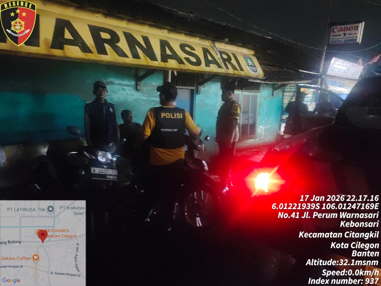 Cilegon - Polsek Ciwandan Polres Cilegon Polda Banten kembali menunjukkan komitmennya dalam menciptakan keamanan dan ketertiban masyarakat (kamtibmas) yang kondusif melalui Kegiatan Patroli Malam, Kegiatan ini dilakukan secara rutin dengan berkeliling di daerah hukum Polsek Ciwandan, Minggu (18/01/2026).