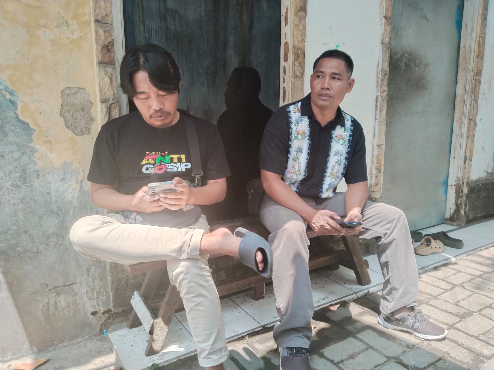 Personil sat intelkam melakukan koordinasi dengan tokoh masyarakat kec. Cinangka kabupaten serang.