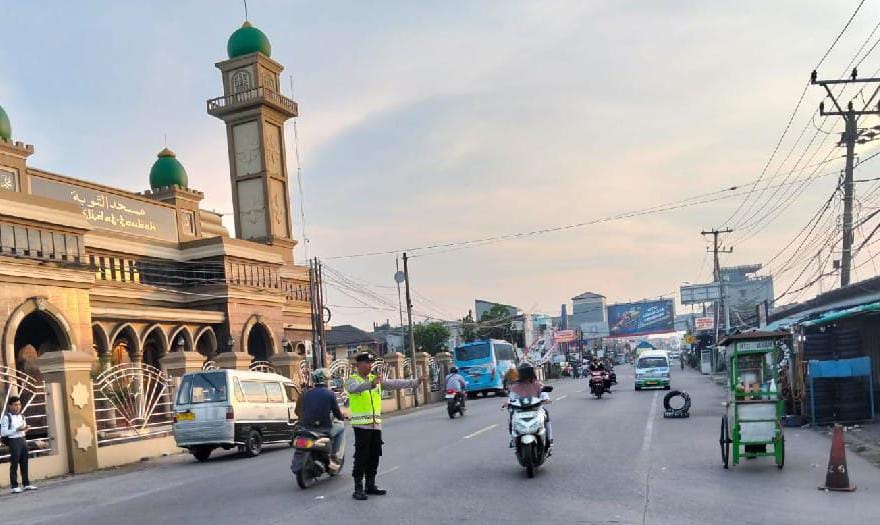 Personil Polsek Anyar lancarkan Arus Kendaraan Dengan Melakukan Pengaturan Lalu Lintas
