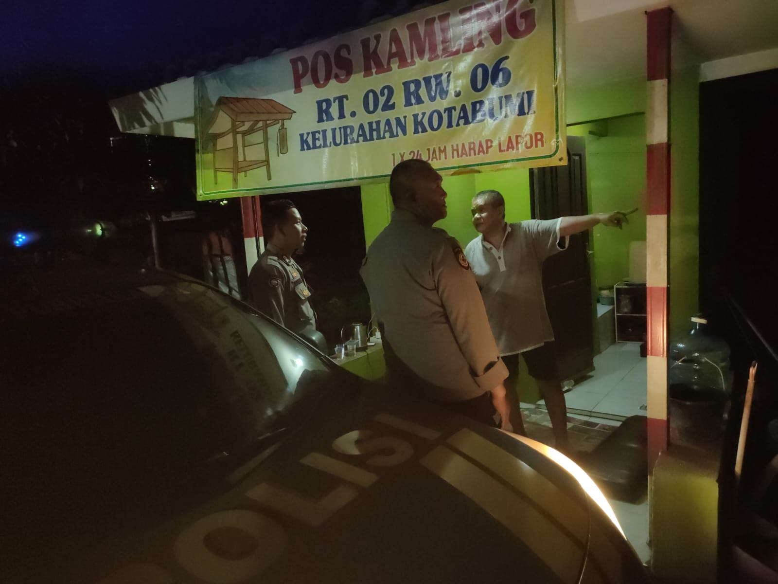 -Polres Cilegon-Polda Banten. Minggu. 8 Februari 2026 – Bhabinkamtibmas Kelurahan Kotabumi, Bripka Agustoni dari Polsek Purwakarta Polres Cilegon, melakukan kunjungan rutin ke Pos Ronda warga di Perumahan Damkar. Kegiatan ini bertujuan untuk menyapa petugas ronda, memastikan situasi keamanan dan ketertiban masyarakat (kamtibmas) tetap kondusif, serta menyampaikan serangkaian himbauan kamtibmas kepada para penjaga yang sedang bertugas.