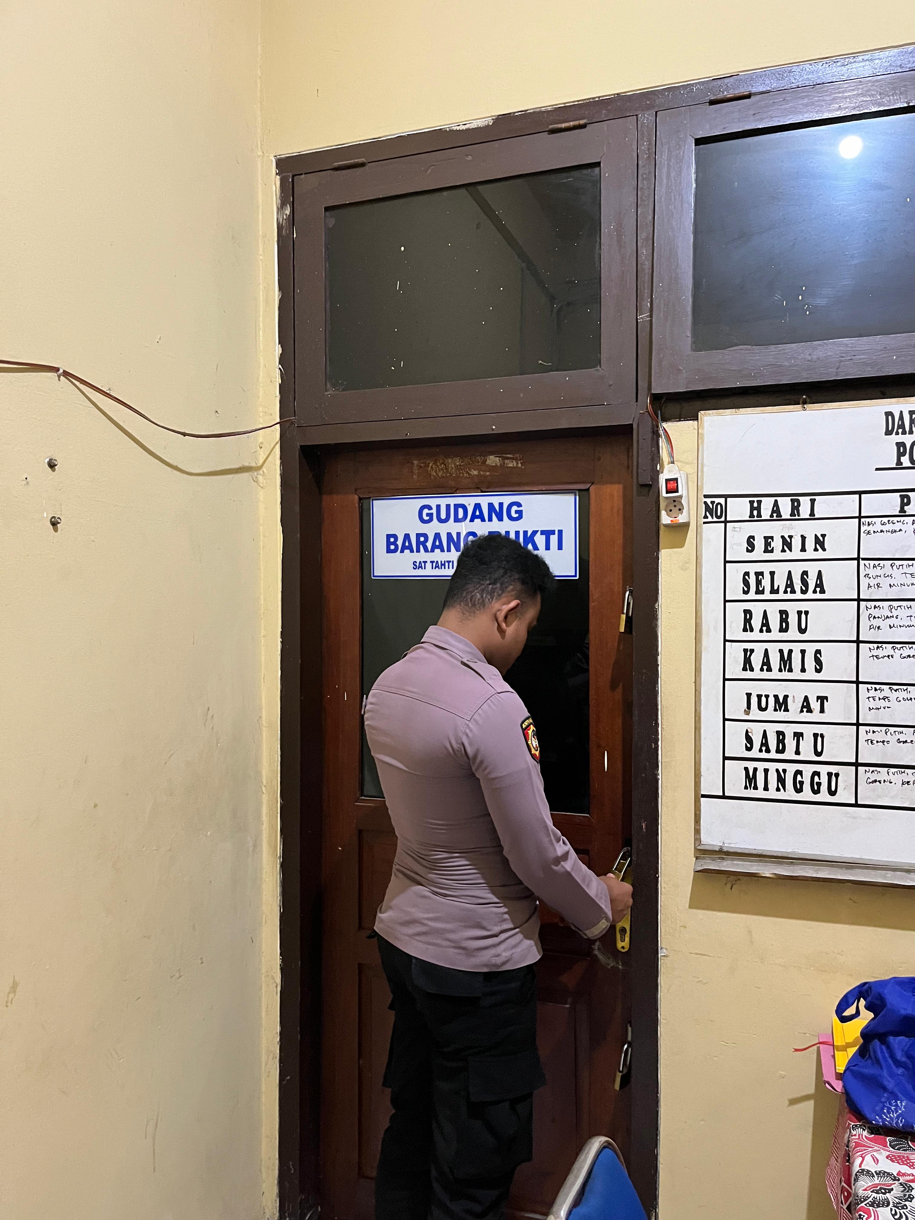 Kegiatan cek ini juga  dilakukan digudang barang bukti agar barang bukti dipastikan selalu dalam keadaan lengkap dan tentunya aman.