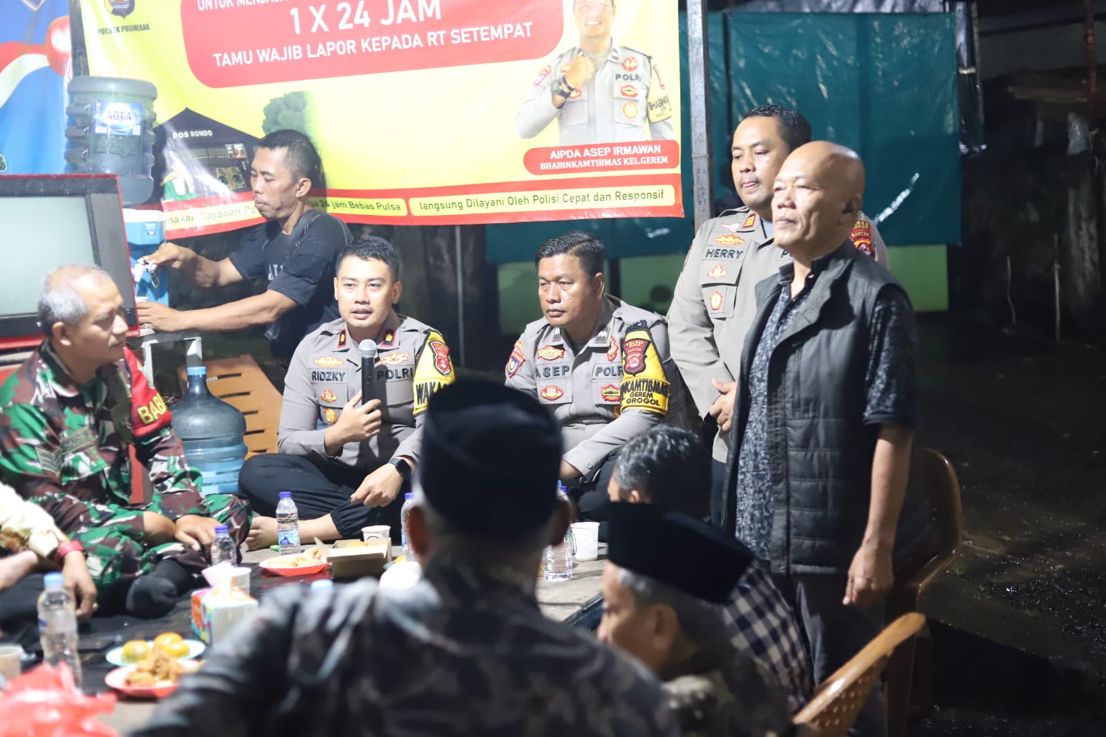 Kegiatan yang berlangsung mulai pukul 21.00 WIB tersebut dihadiri Wakapolres Cilegon KOMPOL M. Ridzky Salatun, S.I.K., didampingi Kasat Binmas Polres Cilegon IPTU Muhyidin, S.H., Kasi Propam Polres Cilegon AKP Heri Susanto, S.H., M.M., serta jajaran personel Polres dan Polsek. Turut hadir Plt Lurah Gerem Himatul Qismat, S.Pdi, unsur TNI, para Ketua RT/RW, serta perwakilan warga setempat.