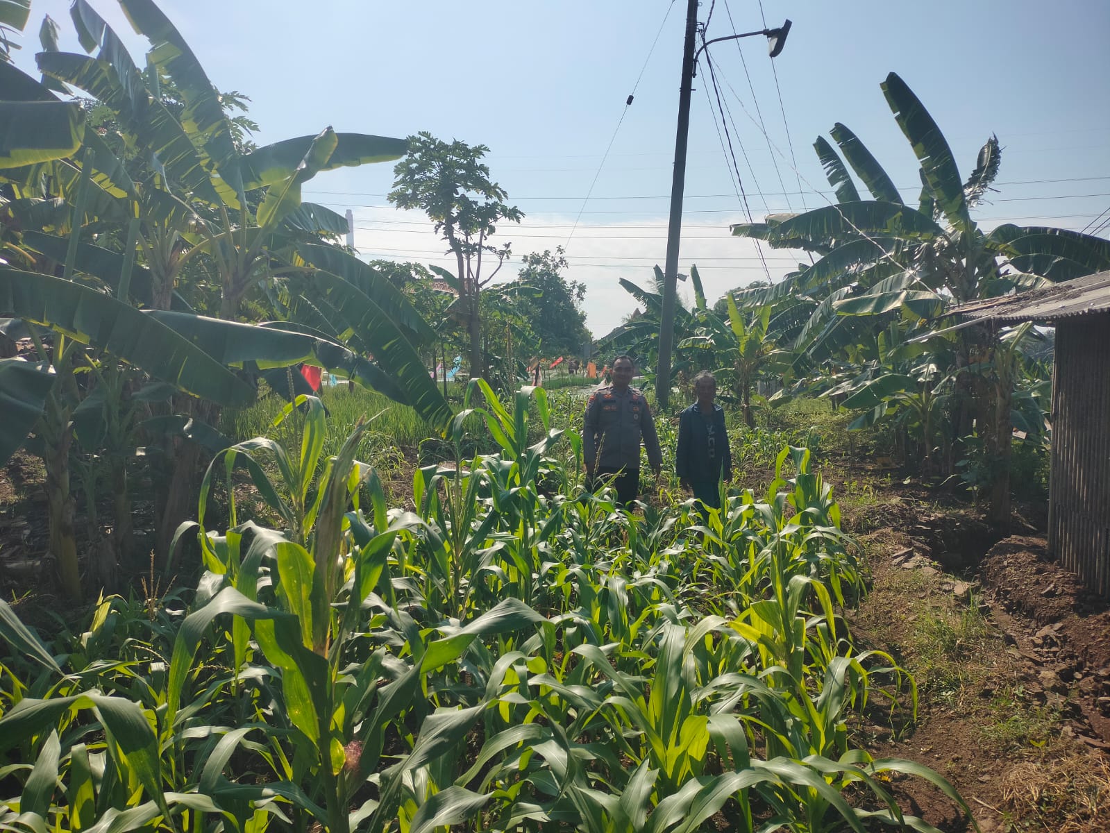 Pantau lahan jagung pok tani sinarjaya kecamatan.puloampel Ds. Banyuwangi oleh Bhabinkamtibmas Polsek Puloampel
