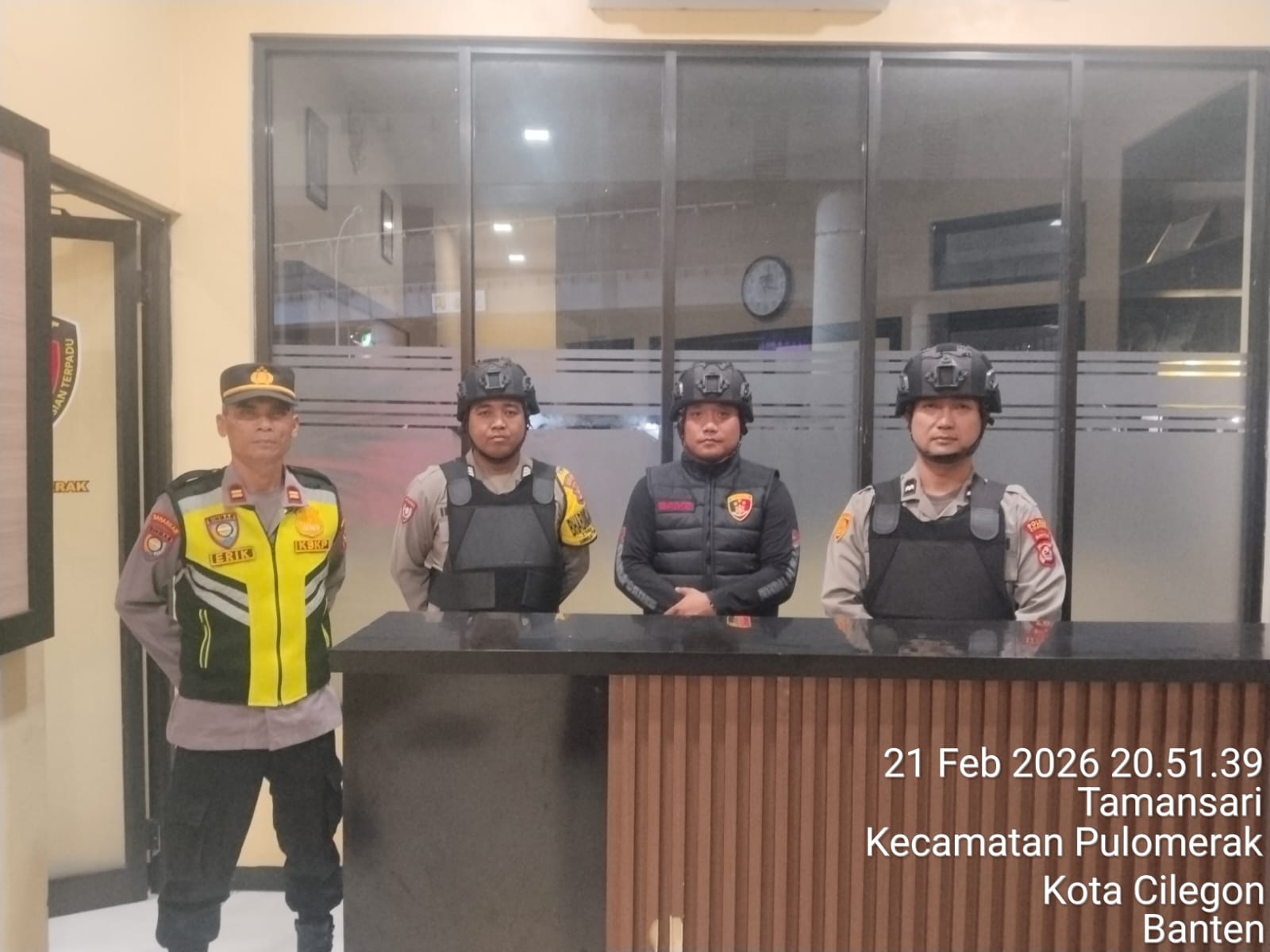 Cilegon - Personel piket jaga Polsek Kskp Merak Polres Cilgon Polda Banten melaksanakan siaga 1 Polsek pelaksanaan Sispam Mako oleh piket siaga dipimpin oleh Kspk Polsek Kskpy Merak Polres Cilegon Polda Banten, Sabtu (21/02/2026).