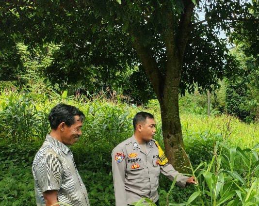 Dalam kegiatan monitoring ini, Bhabinkamtibmas meninjau langsung kondisi lahan jagung.