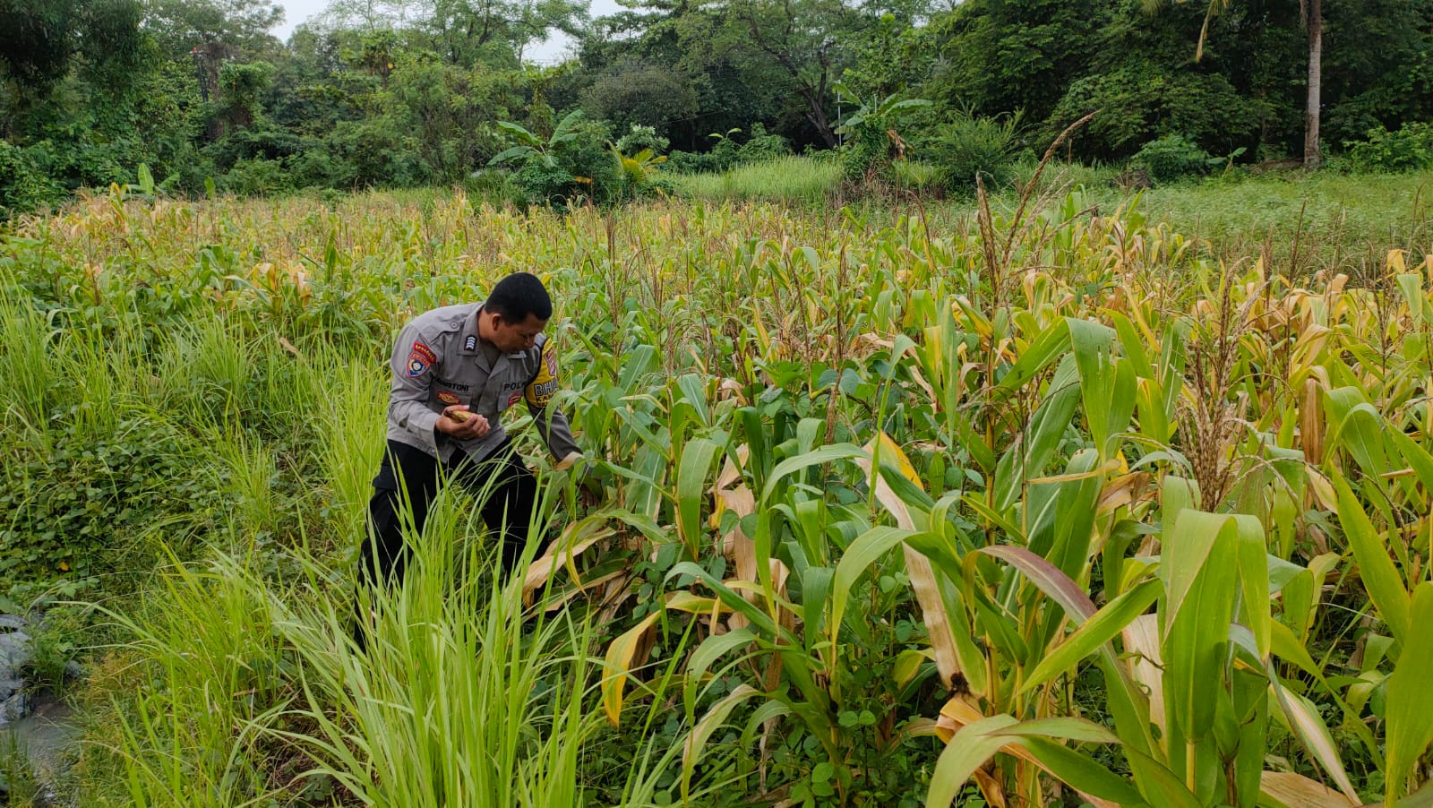 -Polres Cilegon–Polda Banten. Bripka Agustoni, Personel Bhabinkamtibmas Polsek Purwakarta, melakukan kegiatan pemeriksaan dan pemantauan pertumbuhan tanaman jagung di lokasi JL. KH. Yasin Beji, Komplek Perumahan KS, Kelurahan Kotabumi, Kecamatan Purwakarta Kota, Cilegon. Kegiatan ini dilakukan dalam rangka mendukung program ketahanan pangan yang digagas oleh Pemerintah Daerah dan Kepolisian Daerah Cilegon.Minggu.(22-02-2026).