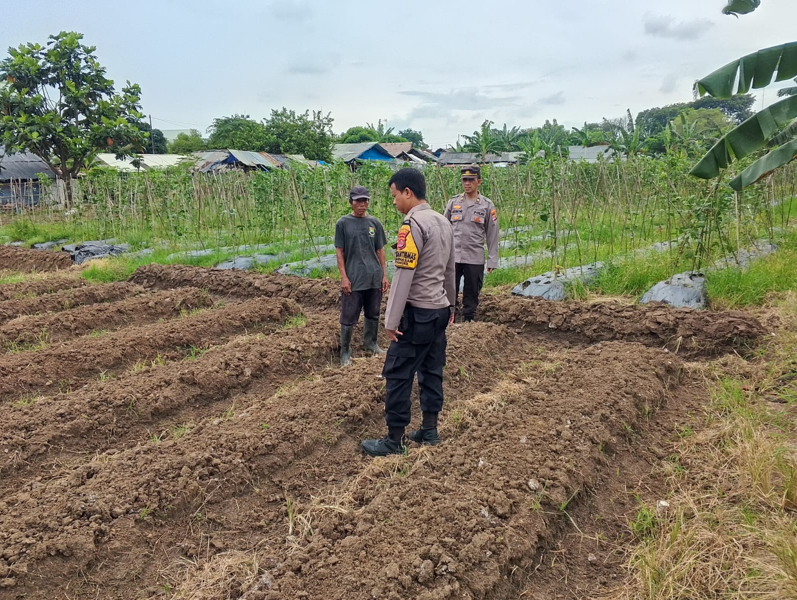 Cilegon - Dalam upaya mendukung program ketahanan pangan nasional Panit Binmas Polsek Ciwandan IPTU Mustriatno Bersama Bhabinkamtibmas Polsek Ciwandan Polres Cilegon Polda Banten AIPDA Mere Erlansyah melaksanakan kegiatan sambang dan kunjungan ke Lahan Produktif warga di lingkungan Kelurahan Warnasari kecamatan Citqngkil kota Cilegon, Senin (02/03/2026).