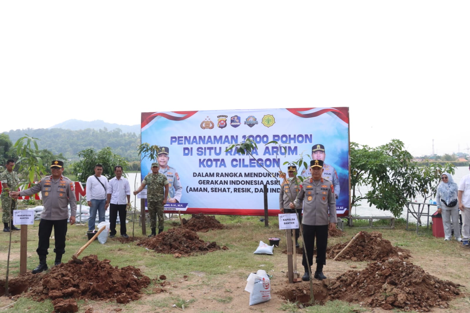 Cilegon – Dalam rangka mendukung program Gerakan Indonesia ASRI, Polda Banten melaksanakan penanaman 1.000 pohon di kawasan Situ Rawa Arum pada Jum'at (17/04).