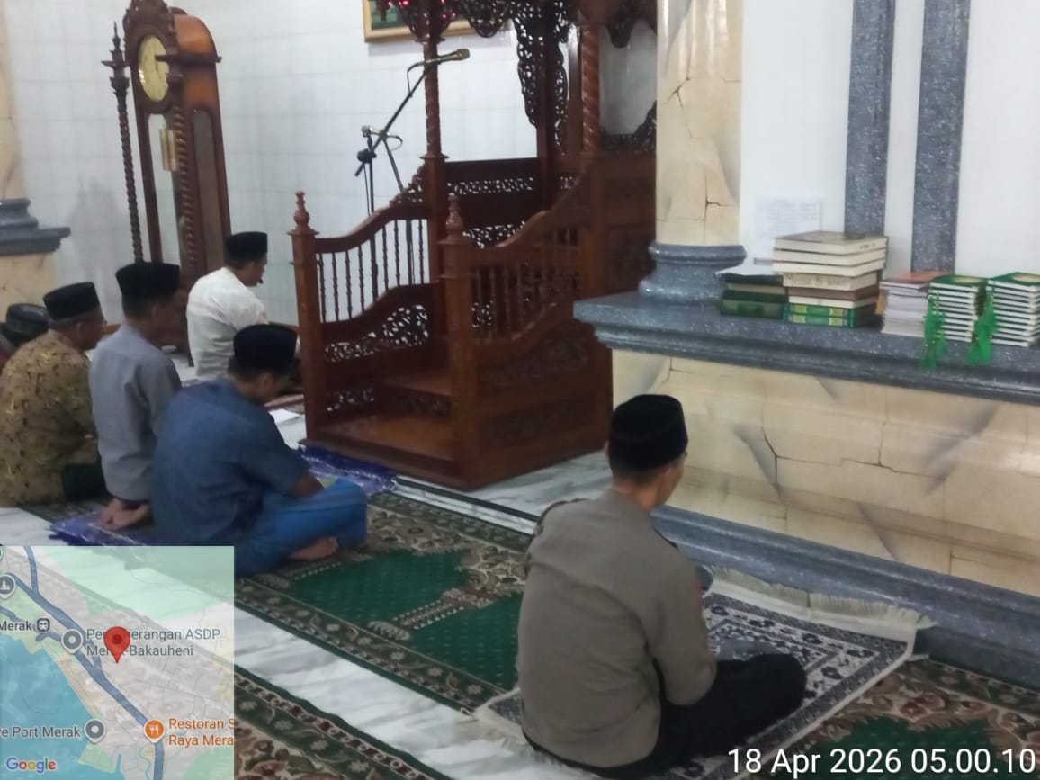 Cilegon – Personil Kskp Merak Polres Cilegon Polda Banten menggelar kegiatan Pembinaan Rohani dengan shalat subuh keliling di Masjid Yang ada Di Daerah hukum Polsek Kp Merak Polres Cilegon Polda Banten, Minggu (19/04/2026).