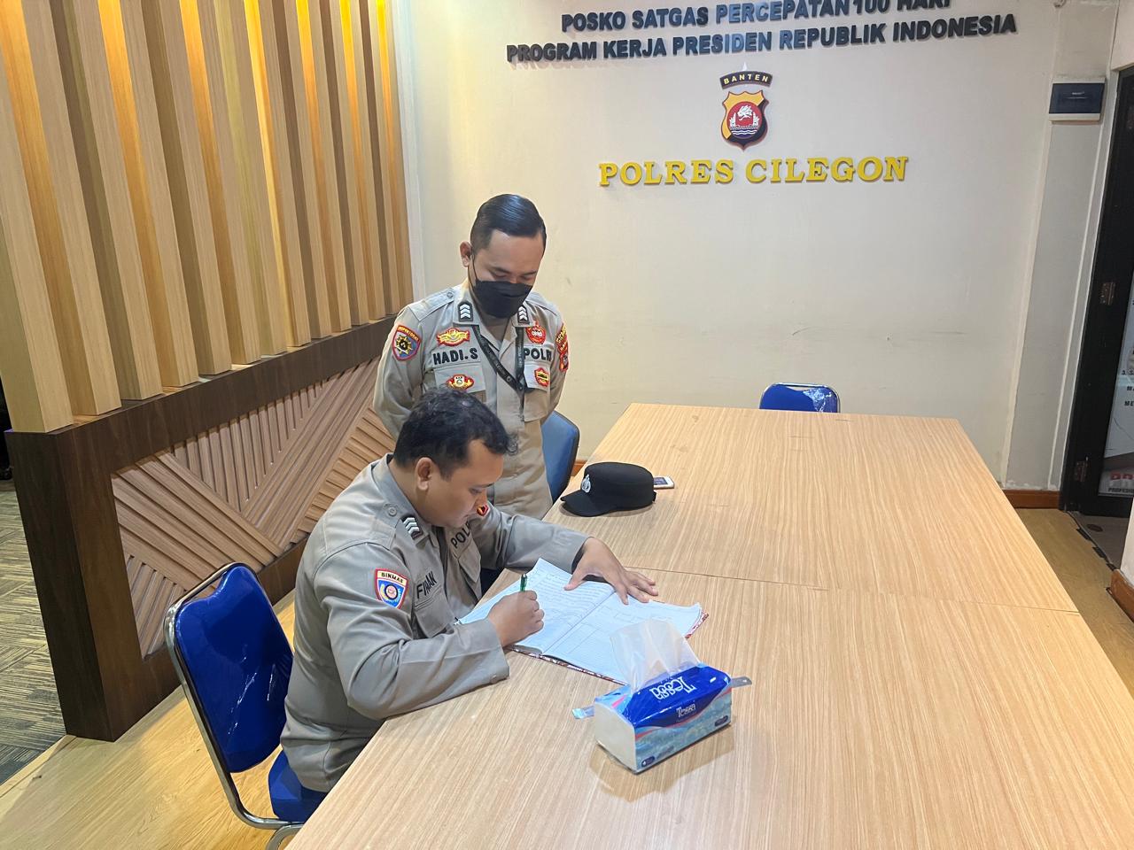 Cilegon,Polres Cilegon Polda Banten Pada Sabtu /25/04/2026 Pukul 10.00 Wib, brigpol hadi s  selaku Personil siwas melaksanakan Pengechekan pada piket jaga 110 Polres Cilegon.