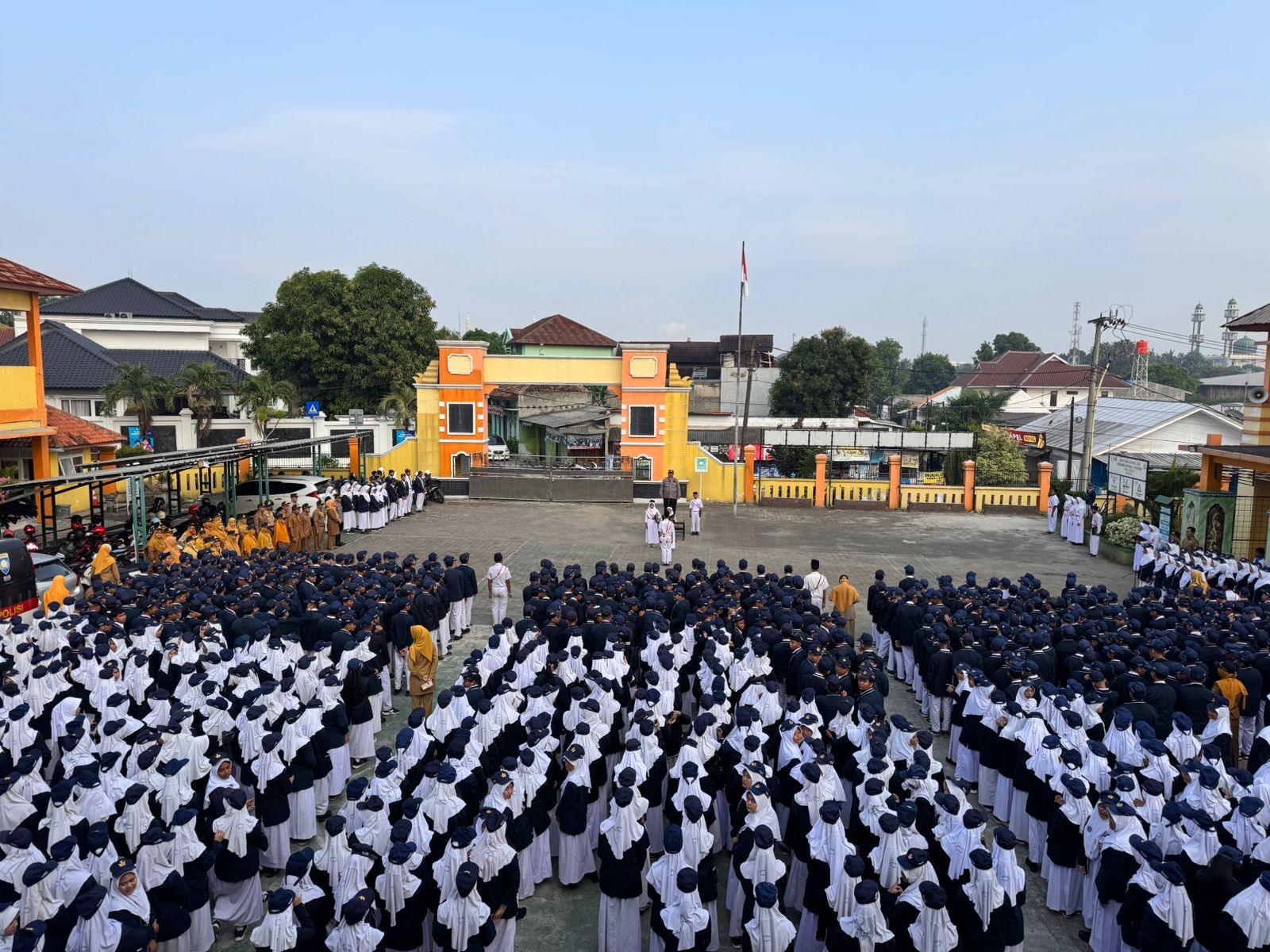 Cilegon ~ Satbinmas Polres Cilegon Polda Banten dipimpin oleh PS Kasatbinmas Polres Cilegon IPTU Muhyidin bersama dengan personel Satbinmas Polres Cilegon melaksanakan kegiatan Polisi Peduli Pendidikan dengan menjadi Pembina Upacara di SMPN 2 Cilegon, Senin (20/04/2026).
