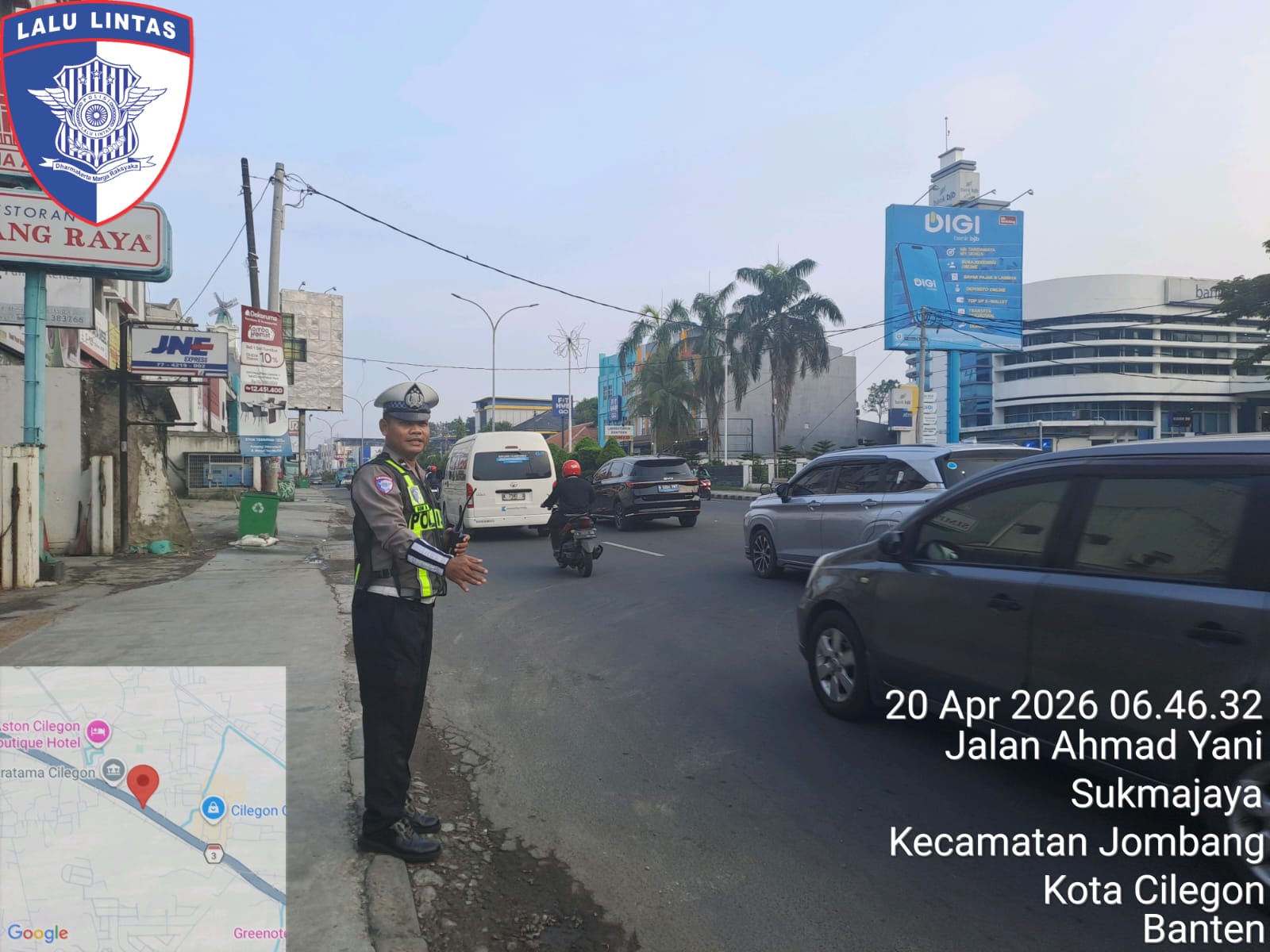 Cilegon, Satlantas Polres Cilegon Polda Banten – Berikan pelayanan kepada masyarakat Kasat lantas Polres Cilegon AKP Ridwan memerintahkan jajaran lalulintas untuk melaksanakan pengaturan lalu lintas di penggal – penggal jalan yang rawan kemacetan di Kota Cilegon, (Senin,20/4/2026)