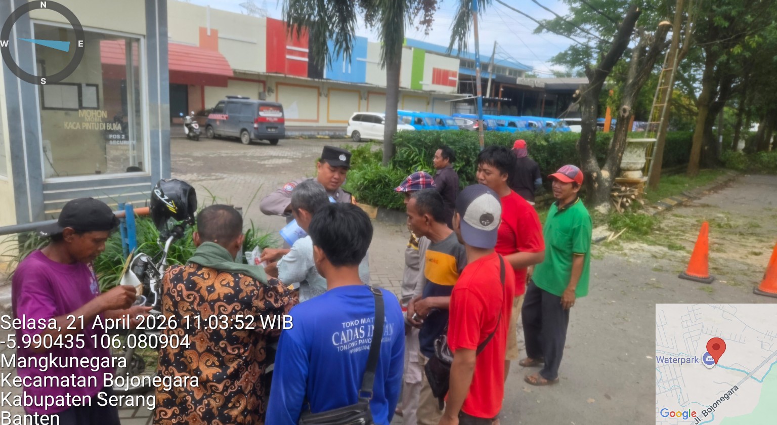 Cilegon – Polres Cilegon Polda Banten, Bhabinkamtibmas Polsek Bojonegara Polres Cilegon melaksanakan kegiatan sambang kamtibmas silaturahmi implementasi Commander Wish Kapolda Banten "WARBINLING" Warung Bhabinkamtibmas Keliling dan Program Commander wish Kapolres Cilegon "TRENDING" dalam rangka menciptakan situasi aman dan kondusif di daerah hukum Polsek Bojonegara Polres Cilegon, Selasa (21/04/2026).