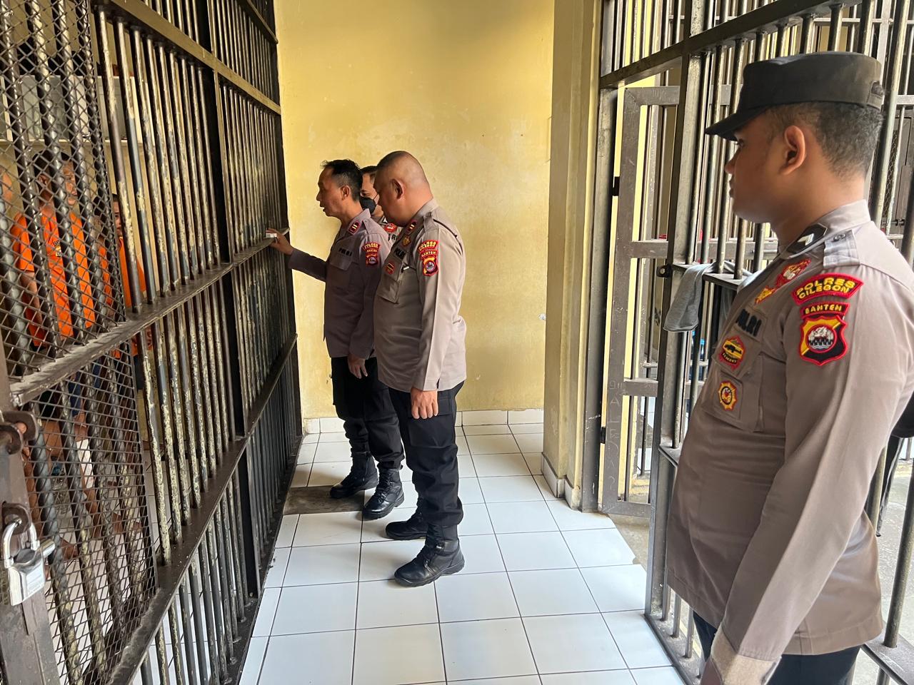Pelaksanaan pengecekan ruangan tahanan Polres bersama piket Jaga tahanan mengecek secara keseluruhan kondisi ruang tahanan. Dalam pengecekan langsung kepada penghuni tahanan, menanyakan tentang kondisi dan keadaan para tahanan.