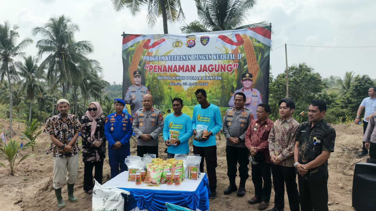Kapolda Banten IRJEN. POL. HENGKI, S.IK., M.H. menyampaikan Penanaman jagung ini merupakan bagian dari upaya Polda Banten dalam mendukung ketahanan pangan nasional sekaligus mengoptimalkan pemanfaatan lahan produktif.
