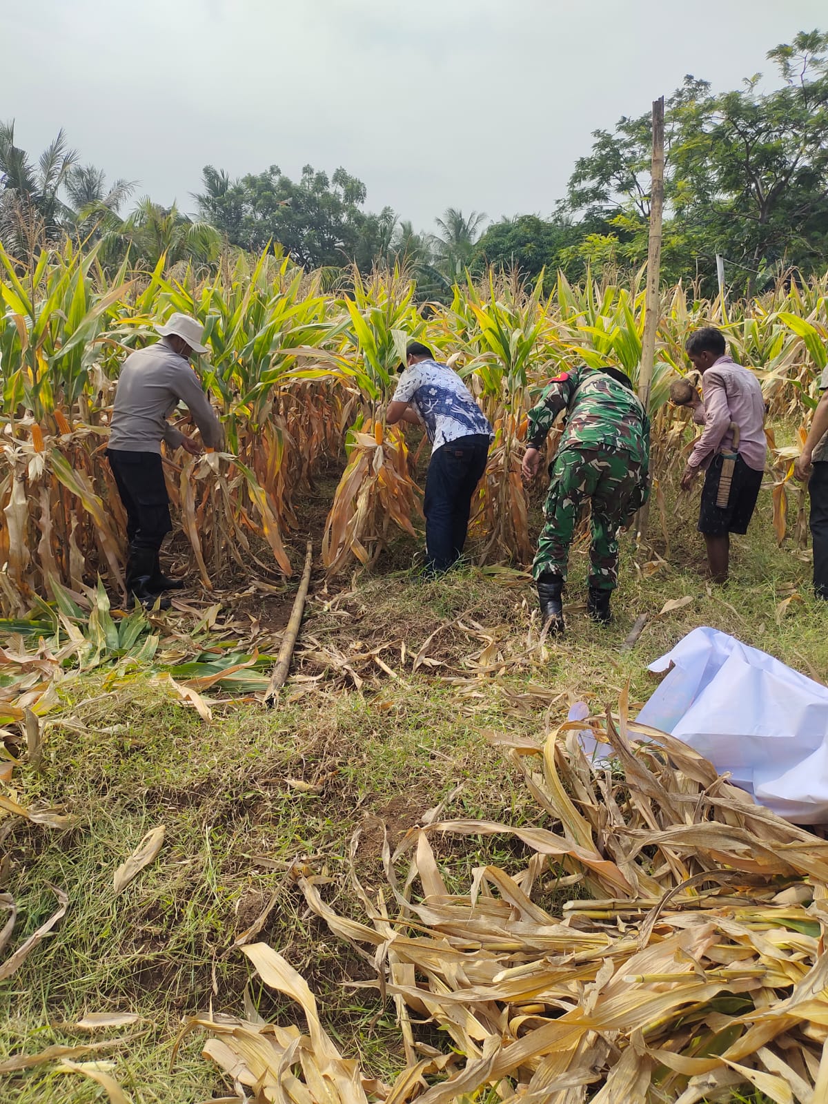 K. beserta anggota Polsek Puloampel melaksanakan Kegiatan Panen Raya Jagung